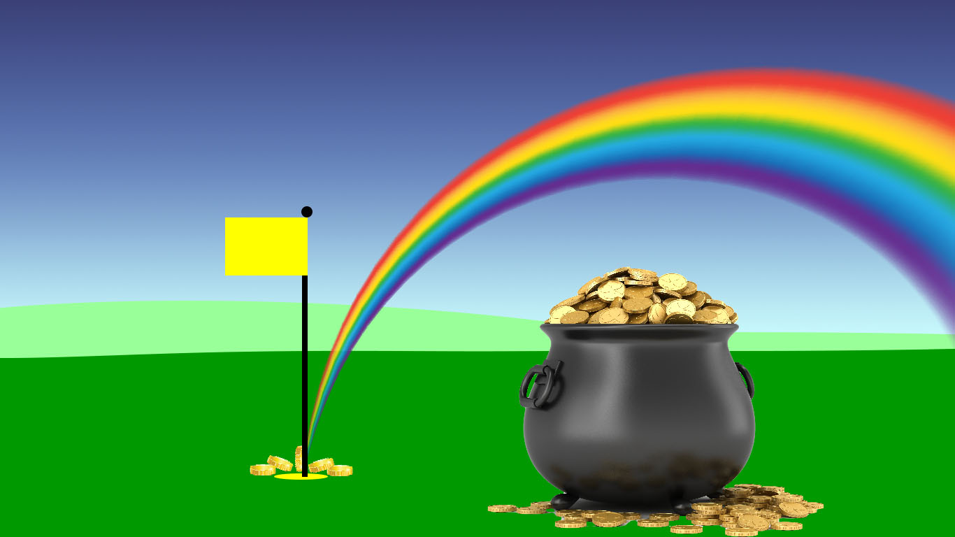There is only a very small cup — not a pot — of gold at the end of the Distance Rainbow.